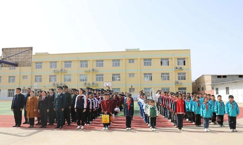 上午10時,活動在灞橋區(qū)狄寨小學(xué)正式拉開帷幕。伴隨著雄壯的國歌聲,全體人員肅立注目,五星紅旗冉冉升起。隨后,二一一隊代表與駐地官兵、師生代表共同向革命烈士紀(jì)念遺址敬獻花籃,并依次獻上手中菊花。最后,狄寨小學(xué)紅領(lǐng)巾講解員生動講述了徐國璉烈士的英勇事跡。