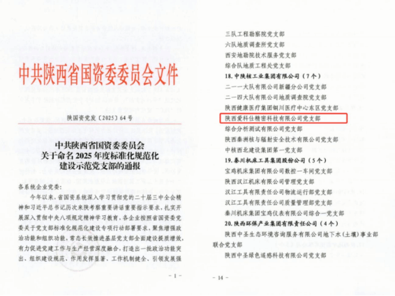 近日,省國資委印發(fā)《關(guān)于命名2025年度標(biāo)準(zhǔn)化規(guī)范化建設(shè)示范黨支部的通報(bào)》,中陜核二一〇所陜西愛科仕精密科技有限公司黨支部榮獲“2025年度省屬企業(yè)標(biāo)準(zhǔn)化規(guī)范化建設(shè)示范黨支部”榮譽(yù)稱號。