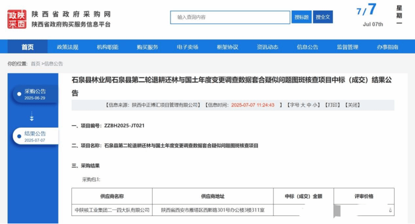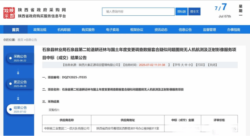 近日,中陜核二一四隊物化探院成功中標《石泉縣第二輪退耕還林與國土年度變更調(diào)查數(shù)據(jù)套合疑似問題圖斑核查項目》及《石泉縣第二輪退耕還林與國土年度變更調(diào)查數(shù)據(jù)套合疑似問題圖斑無人機航測及正射影像服務(wù)項目》。