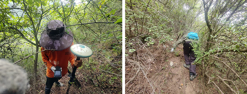 在項目前期準備階段,每一項工作都浸透著團隊的汗水與堅持。為精準勘察礦區(qū)地形,隊員們翻山越嶺、攀崖過坡,為細致排查地質(zhì)隱患,他們深入幽深溝谷、穿梭荊棘叢林。每天清晨,天剛蒙蒙亮,大家便肩扛沉重設(shè)備出發(fā),晨露打濕褲腳、荊棘劃破工裝是常態(tài);崎嶇山路間,徒步數(shù)小時已是日常,汗水浸透衣衫后又被風吹干,留下一圈圈鹽漬。即便面對蚊蟲密集叮咬、烈日狂風交替侵襲,隊員們的初心與決心從未動搖。歷經(jīng)42個日夜的奮戰(zhàn),團隊不僅高質(zhì)量完成礦區(qū)基礎(chǔ)資料收集、勘查方案細化優(yōu)化工作,還對所有作業(yè)設(shè)備進行多輪調(diào)試與精準校準,為后續(xù)物探工作順利開展筑牢堅實基礎(chǔ)。