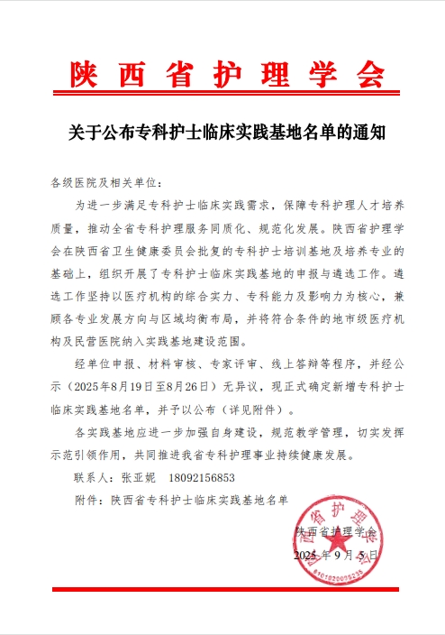 近日,陜西省護(hù)理學(xué)會(huì)正式下發(fā)《關(guān)于公布??谱o(hù)士臨床實(shí)踐基地名單的通知》。陜西省核工業(yè)二一五醫(yī)院憑借綜合實(shí)力優(yōu)勢與卓越的??朴绊懥Γc陜西省人民醫(yī)院、西安交通大學(xué)第二附屬醫(yī)院等多家省內(nèi)一流三甲醫(yī)院共同入選名單,并正式獲批成為“血液凈化”與“手術(shù)室”兩大專業(yè)的省級(jí)??谱o(hù)士臨床實(shí)踐基地,標(biāo)志著我院相關(guān)??谱o(hù)理建設(shè)已步入全省先進(jìn)行列。