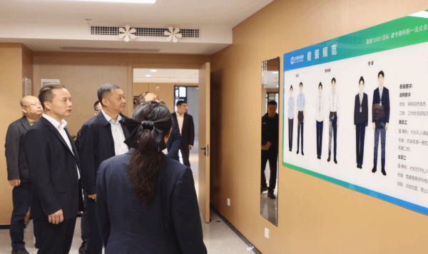 匯報結(jié)束后,與會人員現(xiàn)場觀摩宜威公司辦公區(qū)域,依據(jù)《辦公區(qū)6S管理手冊》相關(guān)條款,在公共辦公區(qū)、檔案室、會議室、職工健康中心等區(qū)域?qū)嵉夭轵灹丝梢暬瘶俗R、定置管理、色彩應用、看板系統(tǒng)等內(nèi)容的落地執(zhí)行情況。