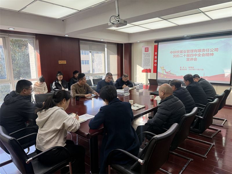為深入學習貫徹黨的二十屆四中全會精神,全面落實習近平新時代中國特色社會主義思想,切實把思想和行動統(tǒng)一到黨中央決策部署上來,11月21日,中陜核置業(yè)公司召開專題宣講報告會。公司黨總支書記、執(zhí)行董事陳海波作專題宣講,公司領(lǐng)導班子成員、各支部書記、機關(guān)各部門及各項目負責人、機關(guān)全體員工參加會議。