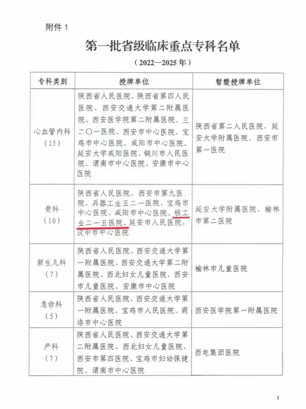 2022年7月8日,陜西省衛(wèi)生健康委員會下發(fā)了《關(guān)于公布第一批省級臨床重點專科名單及第二批建設(shè)項目進展情況的通知》,陜西省核工業(yè)二一五醫(yī)院骨科獲批省級臨床重點???。 二一五醫(yī)院骨科成立于1995年,現(xiàn)已發(fā)展成為...