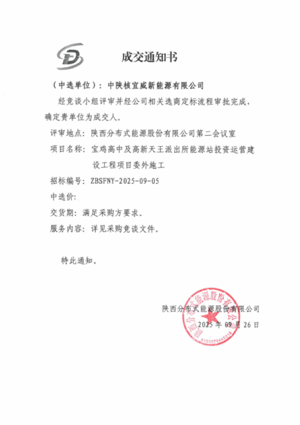 近日,中陜核宜威公司成功中標(biāo)陜西省分布式能源股份有限公司承建的“寶雞高中及高新天王派出所能源站投資運(yùn)營建設(shè)工程項(xiàng)目”。此次中標(biāo)不僅是對(duì)公司能源服務(wù)項(xiàng)目施工能力的高度認(rèn)可,更標(biāo)志著公司在綠色供暖領(lǐng)域的服務(wù)能力再獲重要突破。 公司憑借深厚的技術(shù)積淀、豐富的項(xiàng)目經(jīng)驗(yàn)以及精準(zhǔn)的需求響應(yīng),在激烈的競(jìng)標(biāo)評(píng)審中,因提交的系統(tǒng)方案適配性強(qiáng)、節(jié)能效益顯著而擊敗多家競(jìng)爭(zhēng)對(duì)手。該項(xiàng)目采用的空氣源熱泵技術(shù)具有高效節(jié)能、零碳排放的顯著優(yōu)勢(shì),...