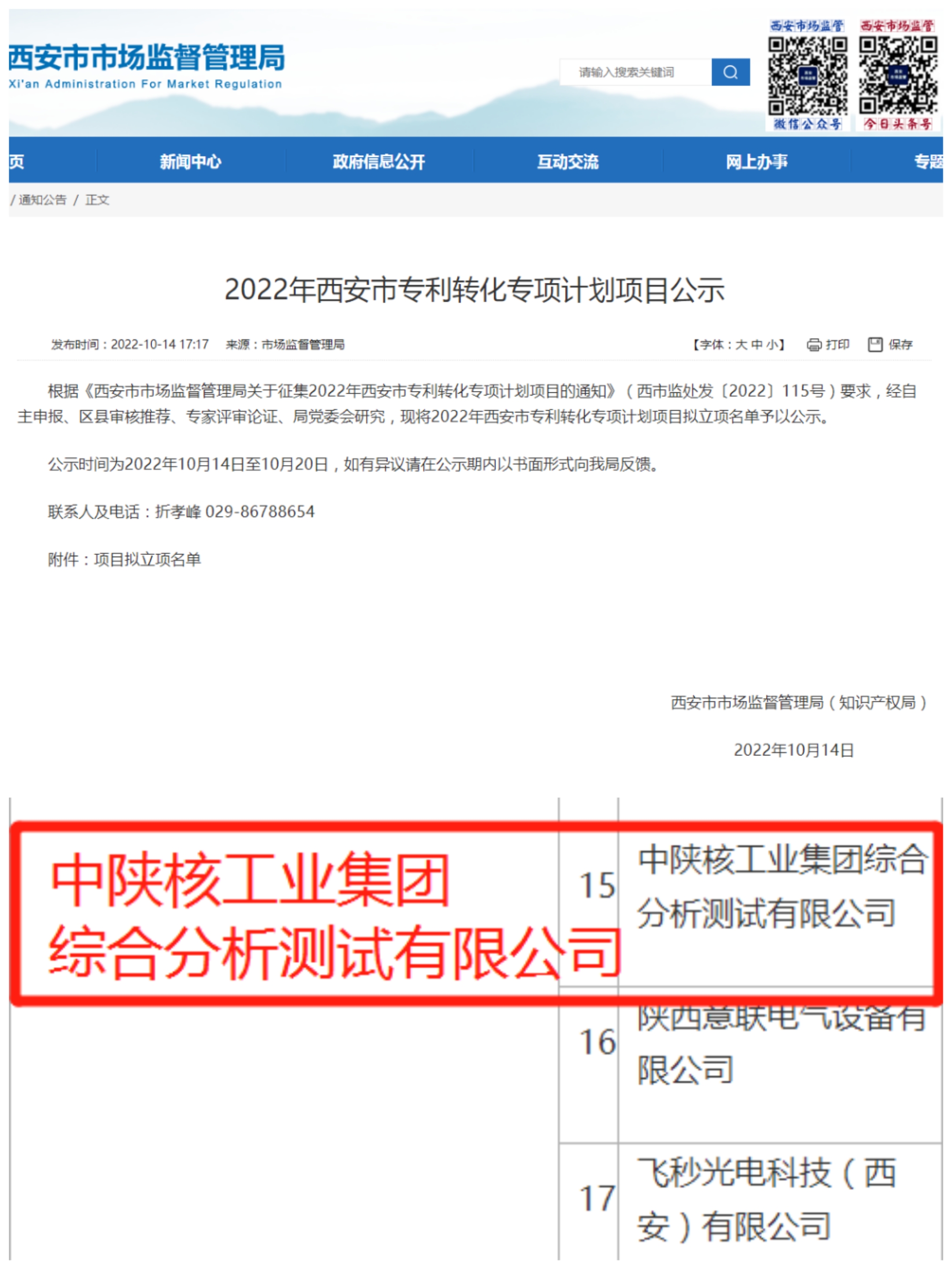 近日,西安市市場監(jiān)督管理局(知識產權局)公示了2022年西安市專利轉化專項計劃項目擬立項名單,中陜核工業(yè)集團綜合分析測試有限公司“知識產權優(yōu)勢企業(yè)培育項目(創(chuàng)新型企業(yè)高質量提升項目)”項目成功上榜。 此次...